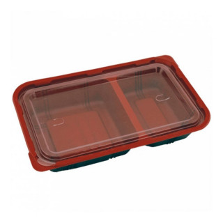 Купить Контейнер порционный с крышкой черно-красный, СВЧ, 23,9*15*4,5 см, PP, 50 шт/уп